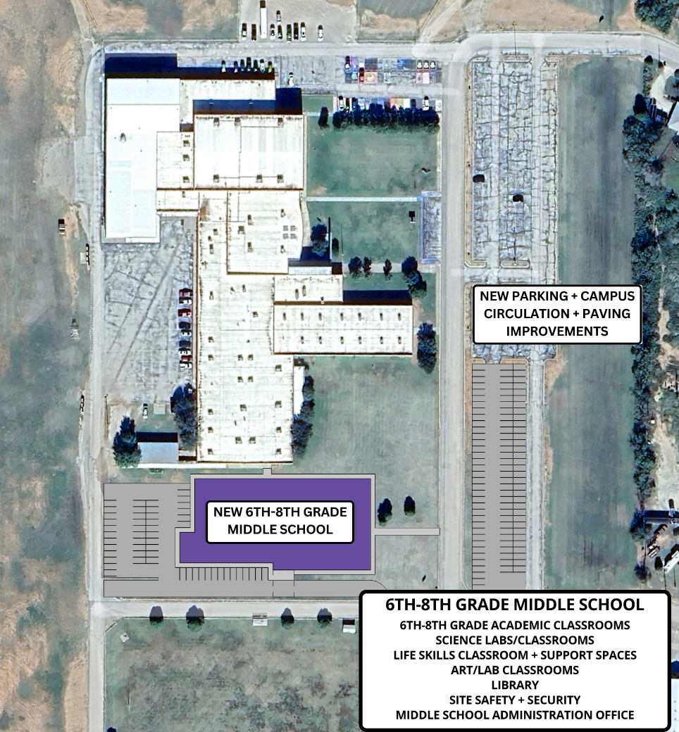The main priorities of the November 2025 bond are the safety of our students and staff, managing program/student growth, and maintaining and updating MISD’s facilities. The goal of the proposed projects is to provide a new middle school that meets current educational and safety standards.